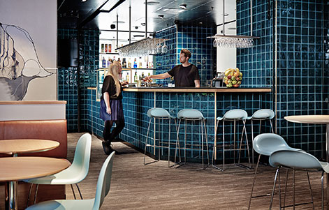 Vores bar holder åbent hele dagen og aftenen, og her har du altid mulighed for at købe øl, vin, vand, kaffe/the, snacks, sandwiches, salater, chips mm.